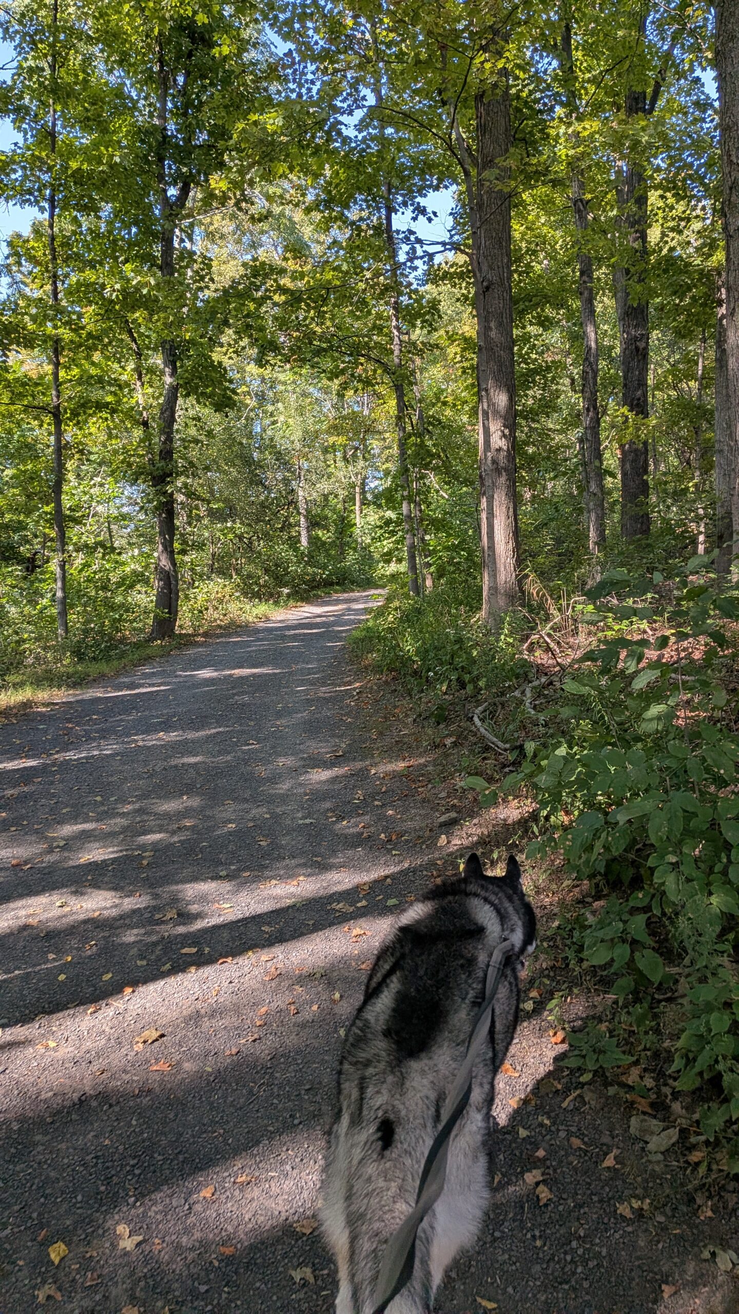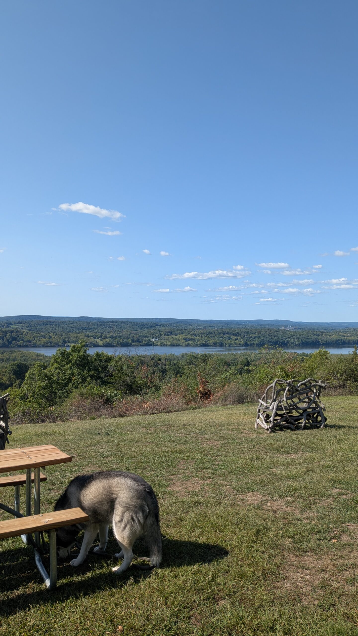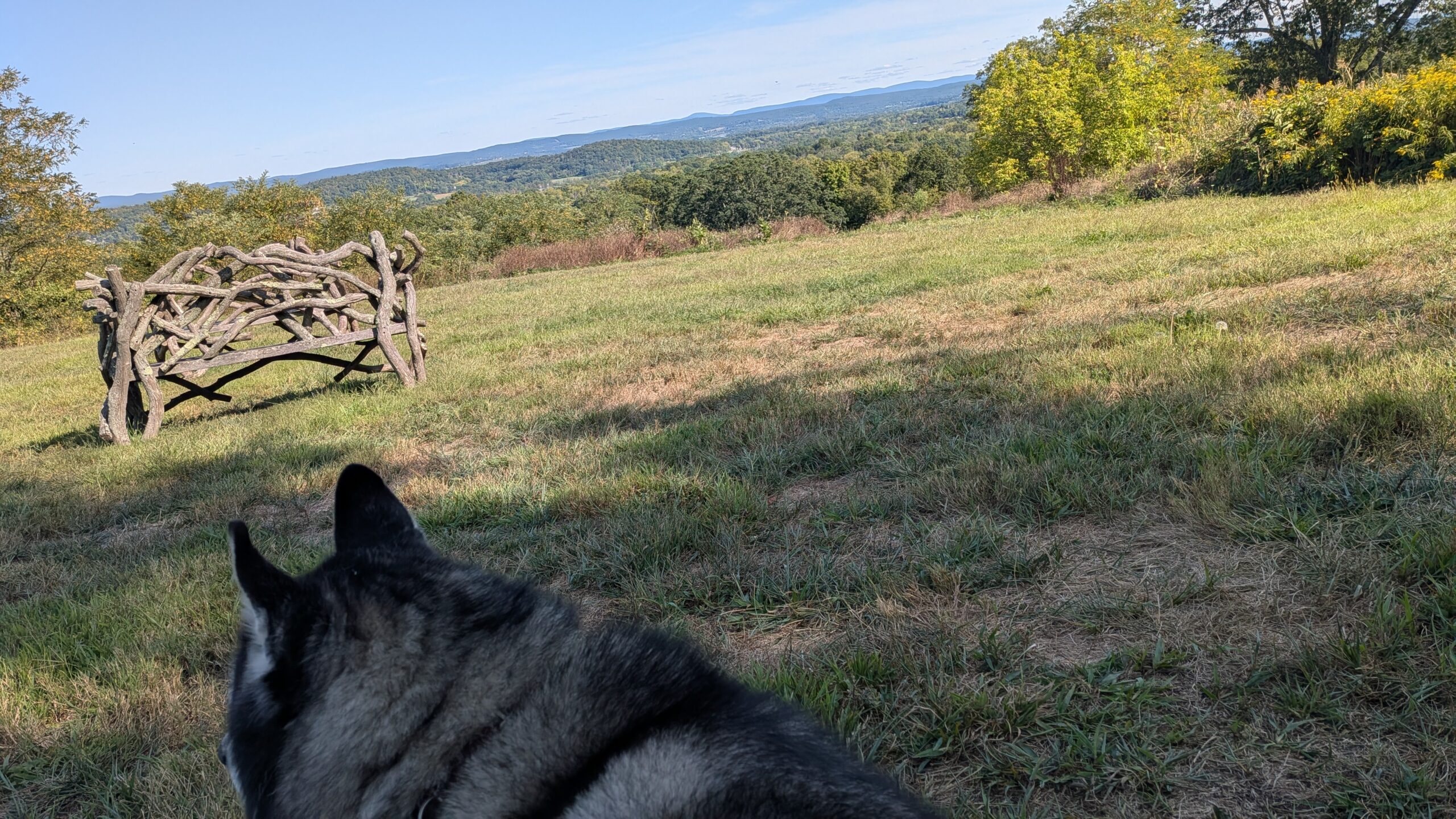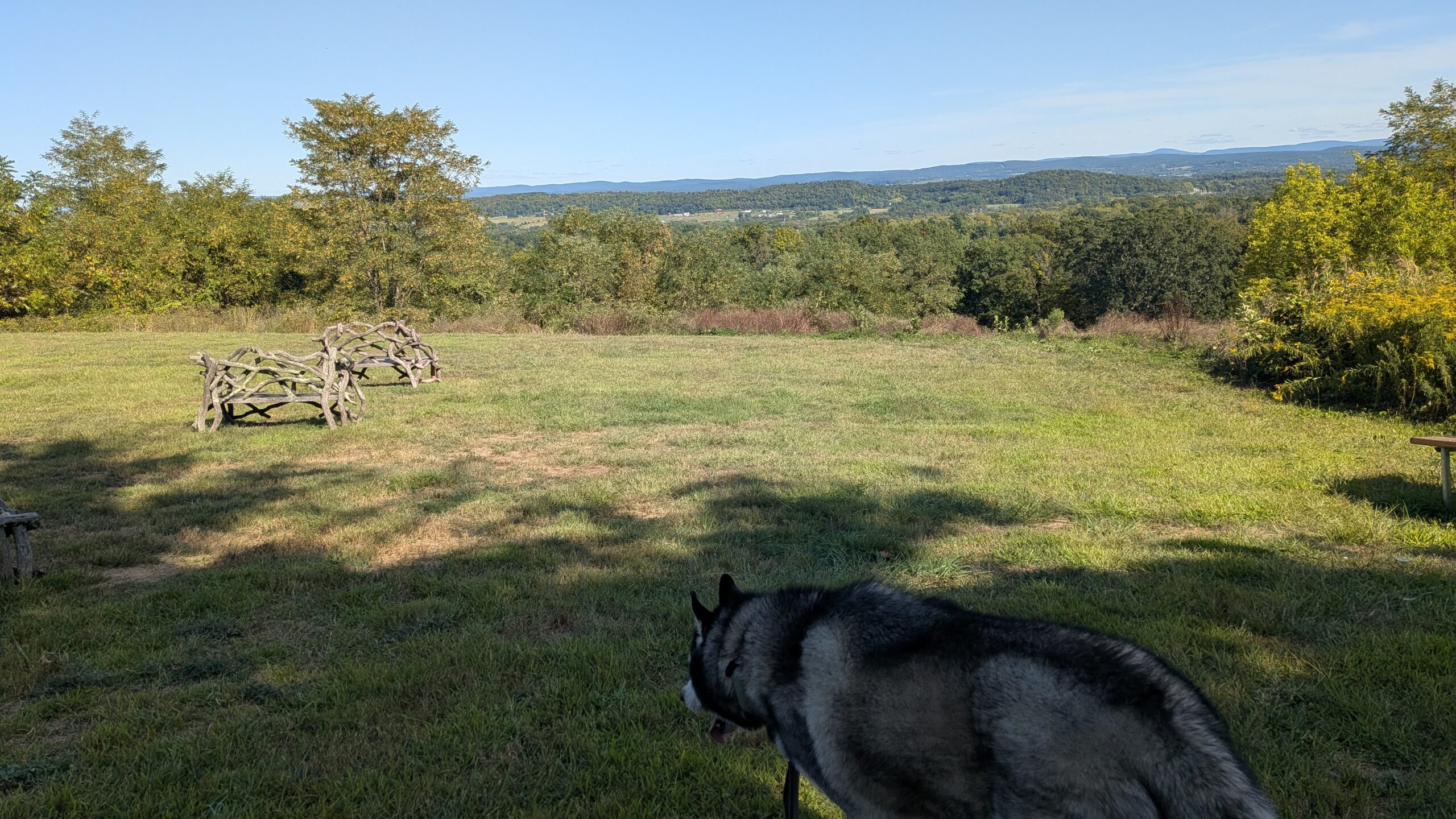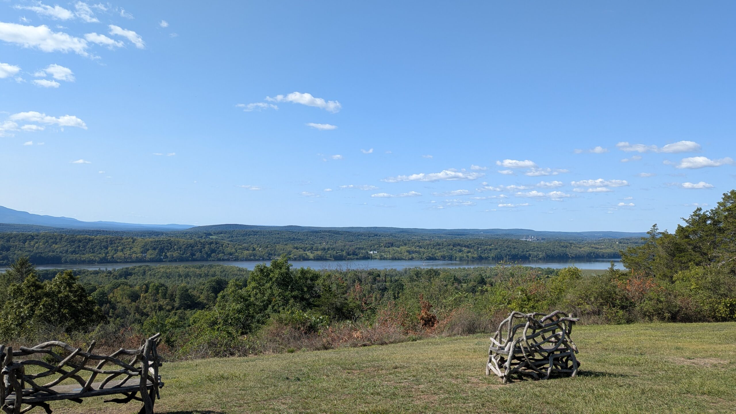 Meanwhile, I took Lucky for a long walk along the grounds. The trails wound through meadows and woodlands, opening up to sweeping views of the river and Catskills beyond. The hour passed quickly, with Lucky happily leading the way and both of us enjoying the peacefulness of the estate.