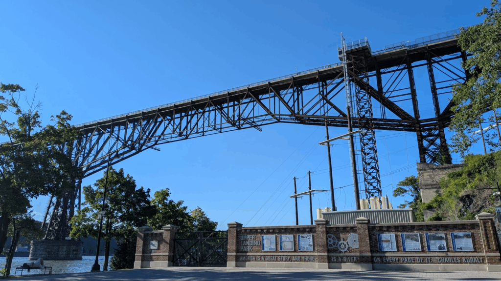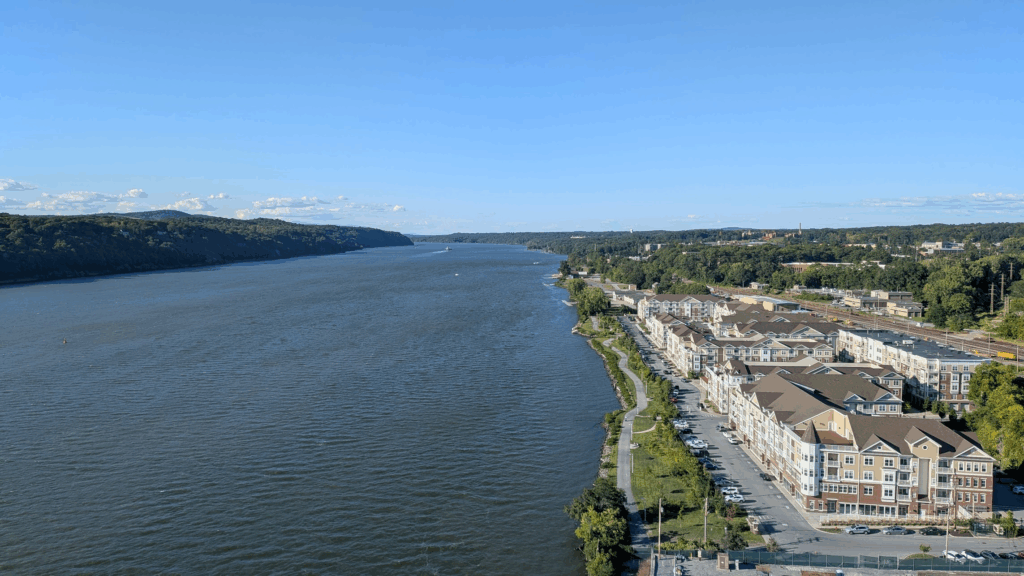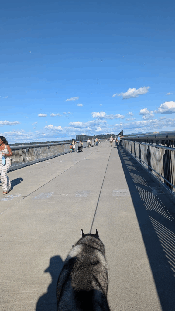 From there, we shifted from history to breathtaking views at Walkway Over the Hudson State Historic Park. Lucky came along for this adventure and couldn’t have been happier. The wide pedestrian bridge stretches across the Hudson River, offering sweeping panoramas of the water and surrounding valley. We strolled all the way across, soaking in the scenery, before taking the elevator down to the river’s edge for a closer look. Feeling the cool breeze and looking up at the bridge from below was a whole new perspective.