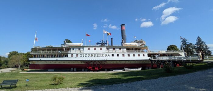 The museum turned out to be a fascinating and eclectic stop—really more of a campus than a single building. Spread across dozens of historic structures, each space held its own character and collection. From folk art to historic homes, we found ourselves wandering through layers of American history. The highlight, though, was undoubtedly The Ticonderoga, a restored 220-foot steamship now resting on dry land. Climbing aboard and exploring the decks felt like stepping back in time to the days when she carried passengers across Lake Champlain. We stayed until about 4:30 p.m., and it still felt like we only scratched the surface.